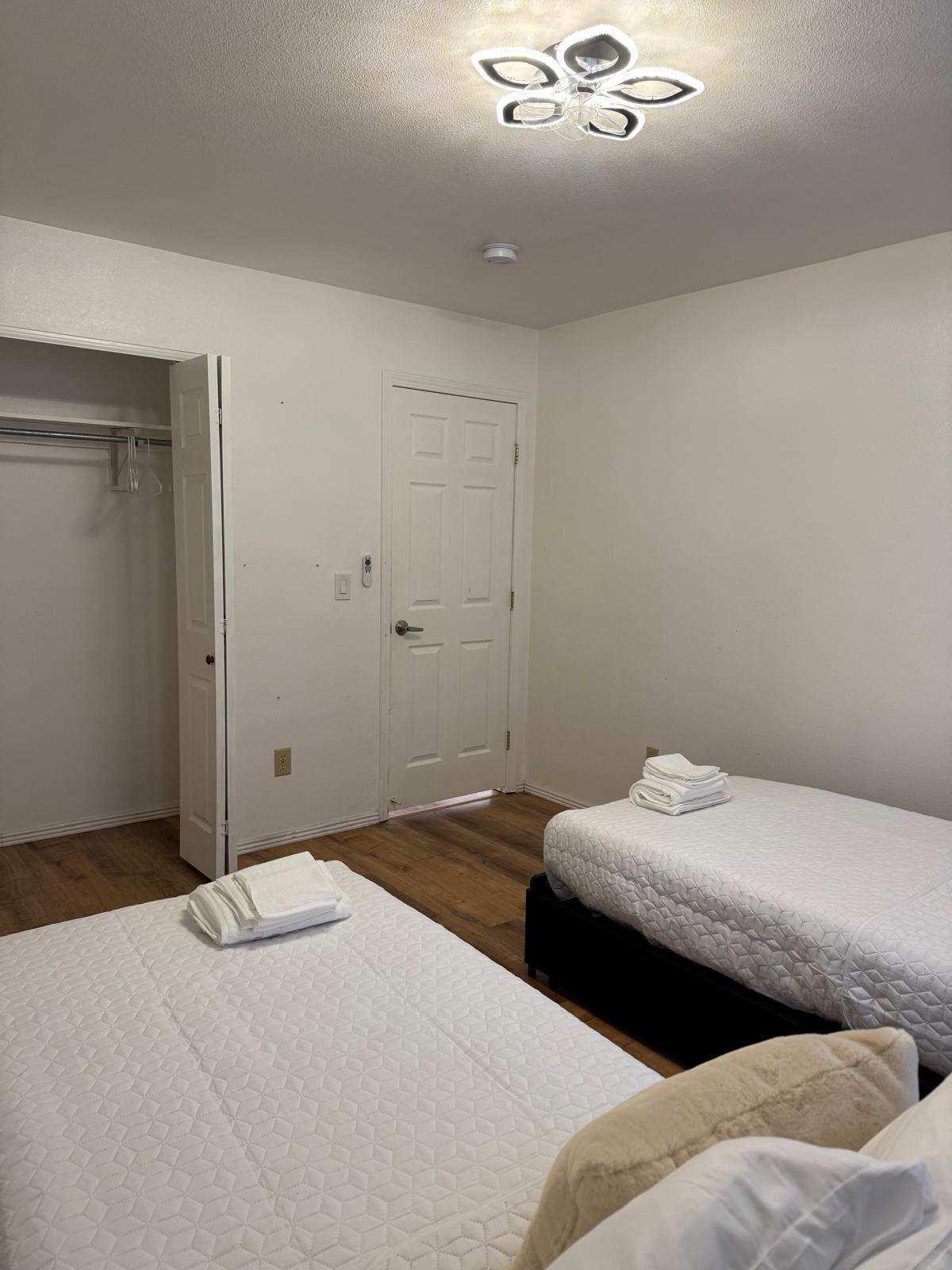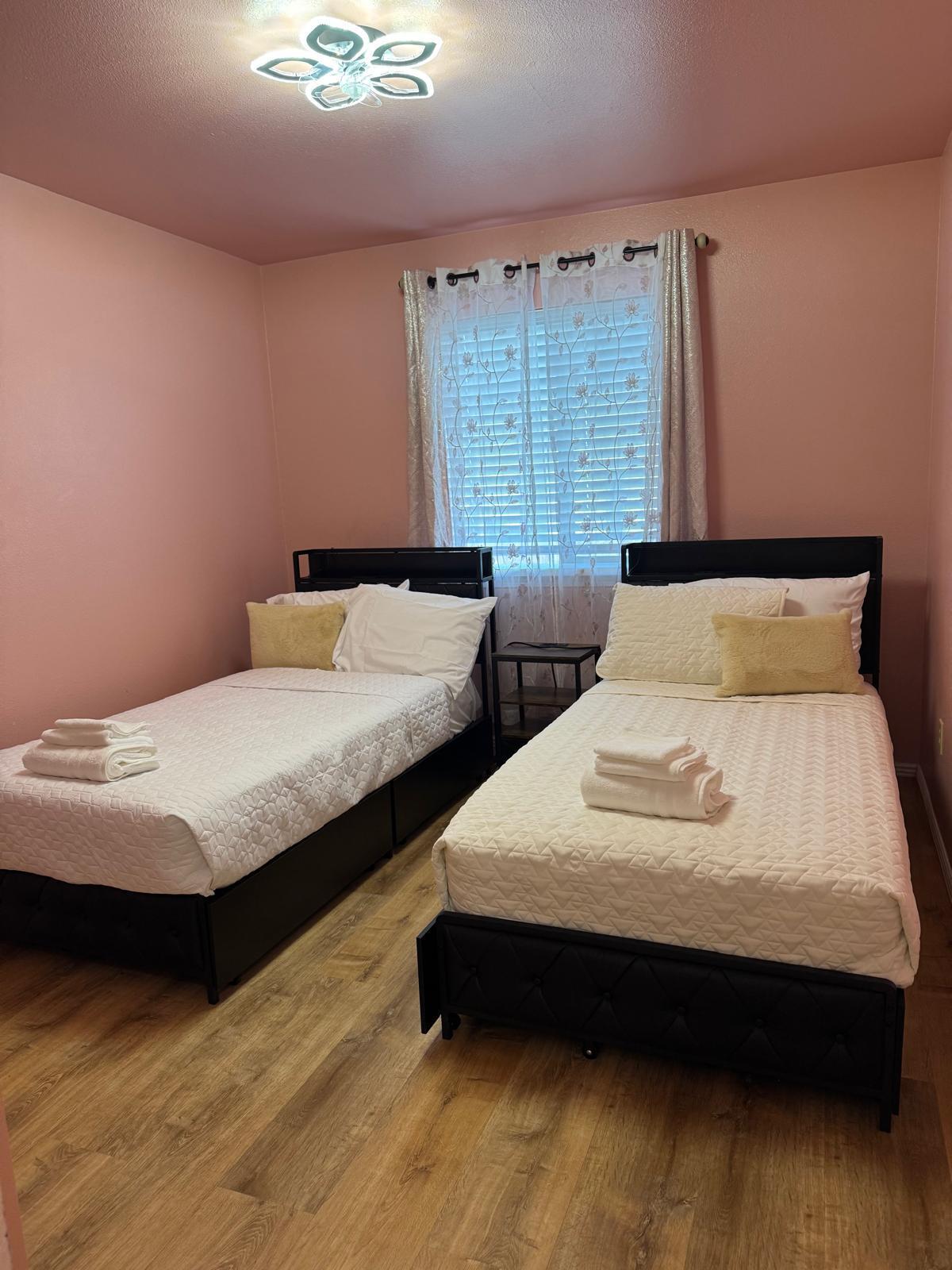 The home features three well-sized bedrooms with comfortable beds, fresh linens, and storage space to help you settle in easily. A bright living area provides a relaxing spot to unwind after a busy day—ideal for movie nights, catching up with friends, or simply enjoying a quiet evening indoors. The bathroom is clean and functional, with fresh towels and essential toiletries provided.