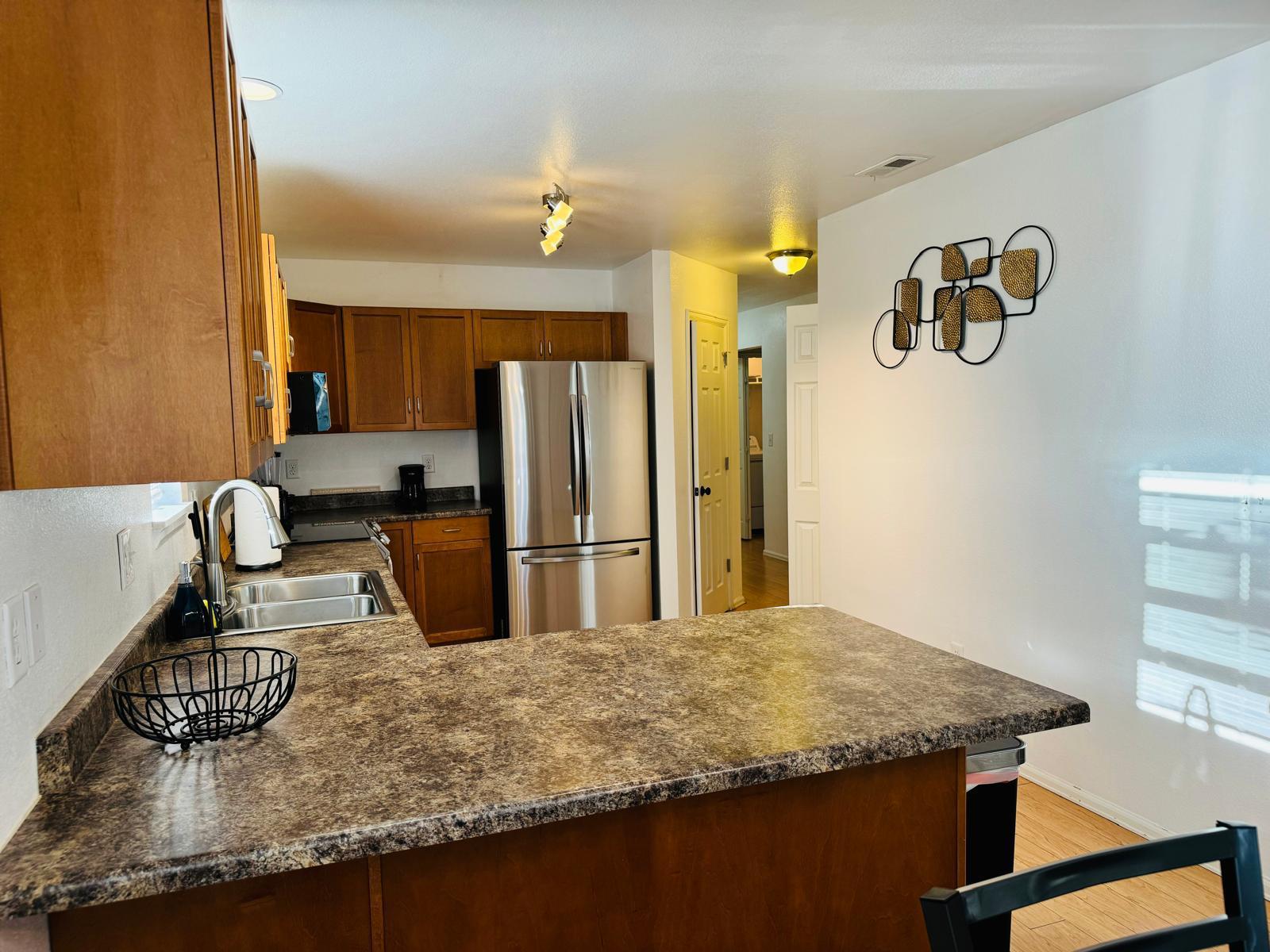 You’ll also enjoy a practical kitchen and dining space, suitable for preparing meals, storing groceries, and enjoying breakfast or dinner together. Whether you’re staying for a weekend, a business trip, or an extended visit, the home is arranged to make daily living simple and comfortable.